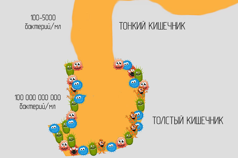 Синдром избыточного бактериального роста — это состояние, при котором в тонком кишечнике (где бактерий должно быть мало) появляется избыток бактерий из толстой кишки. Они ферментируют (перерабатывают) пищу и выделяют большое количество газа и эндотоксинов.