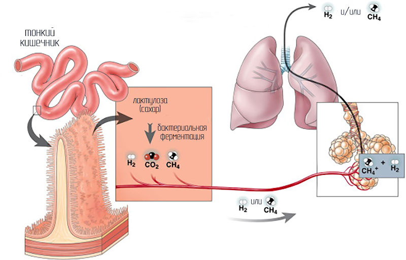 Золотым стандартом для подтверждения диагноза СИБР является водородно-метановый дыхательный тест с лактулозой. Теста оценивает изменение концентрации водорода и метана после употребления внутрь специального раствора. Для теста используется невсасываемый углевод лактулоза. В результате переработки бактериями в кишечнике вырабатывается газ — водород и/или метан. При избыточным росте водород— и метанпродуцирующих микроорганизмов выделяется большое количество газов что и показывают результаты теста. По итогам теста определяется тип СИБР — метановый или водородный (может быть смешанным).