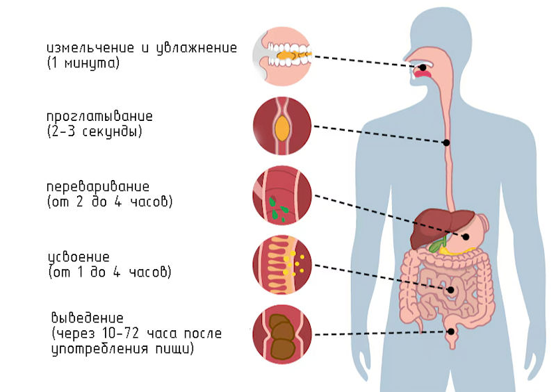 Работа пищеварительной системы — пищеварительная система продолжает свою работу по перевариванию и всасыванию веществ.